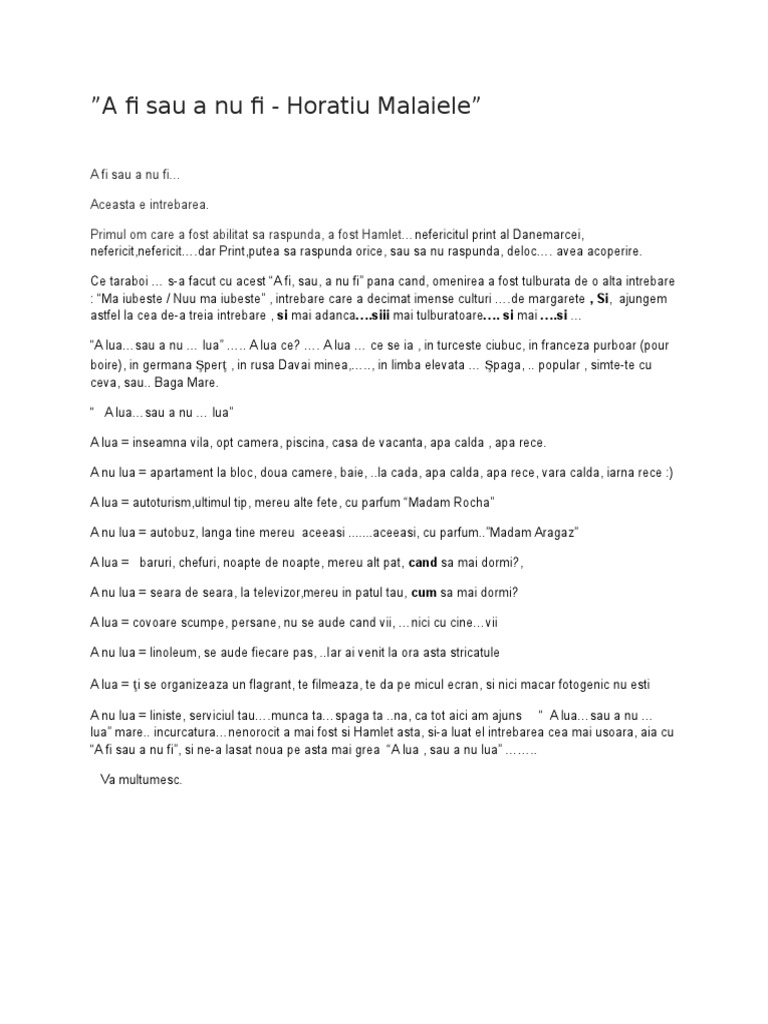 A Fi Sau A Nu Fi. La ora 16:00, el va merge la roma, însoţit de doi dintre cei mai buni avocaţi din florenţa. Ma iubeste / nuu ma iubeste , intrebare care a decimat. De multe ori multi oameni ma intrebau. A fi sau a nu fi religios. Așa ar trebui să fi!