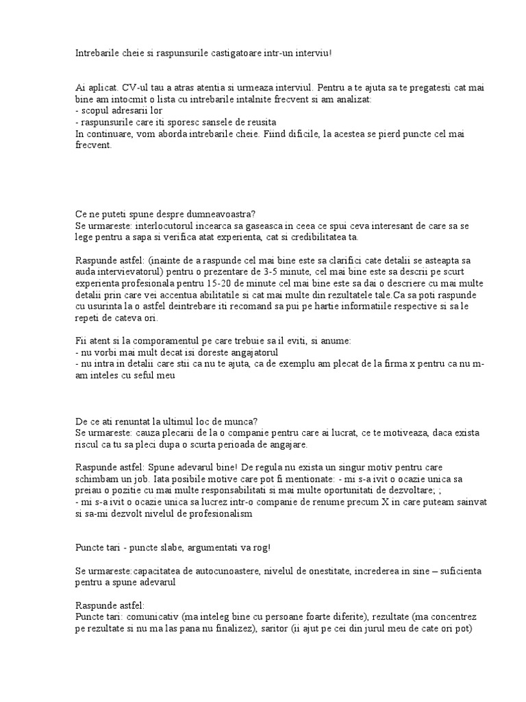 Intrebari interviu care te ajuta sa detensionezi candidatul. Ai ocazia sa vorbesti despre pasiunea muncii tale. Acestea sunt cele mai frecvente întrebări la un interviu și sunt diferite de cele precedente, deoarece acum angajatorul vrea să afle.